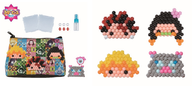 『アクアビーズ ペンポーチセット 鬼滅の刃』は、アニメ「鬼滅の刃」のメインキャラクターである炭治郎、禰豆子、善逸、伊之助をつくって遊べます。ビーズ、トレイ、きりふきとペンポーチが入ったオールインワンタイプとなっているため、本商品のみでお楽しみいただけます。さらに、出来上がった作品をセットのペンポーチにデコレーションすることができ、好みにあわせて作品の付け替え可能です。