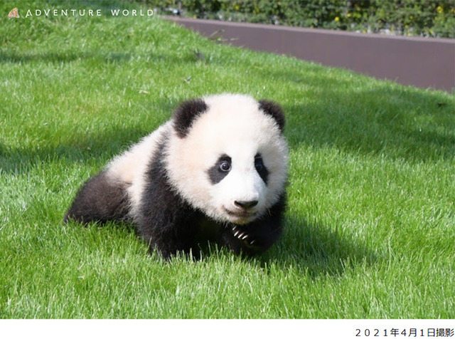 アドベンチャーワールド(和歌山県白浜町)では、2020年11月22日(木)に誕生したジャイアントパンダの赤ちゃん「楓浜(ふうひん)」の日光浴を始めました。「楓浜」は誕生時から、温湿度や衛生面の管理のため、ブリーディングセンターの屋内で暮らしています。3月上旬より外気温が少し暖かくなり、運動量が増え活発に動けるようになってきたため、たくさんの刺激に触れられる屋外運動場で過ごす時間を作っています。