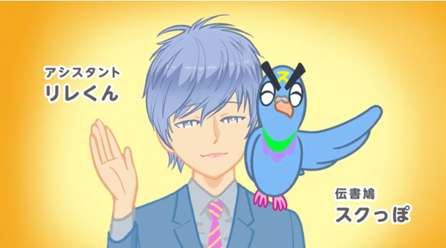 「スクリレ」キャラクター アシスタントのリレくん(左)伝書鳩のスクっぽ(右)