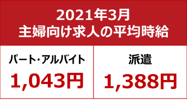 ビースタイルグループで主婦に特化した求人サイト『しゅふJOBパート』を運営する株式会社ビースタイル メディア(本社:東京都新宿区、代表取締役社長:小牟田斉美)は、掲載された求人情報の時給データから算出した『平均時給』の2021年3月分を集計しました。