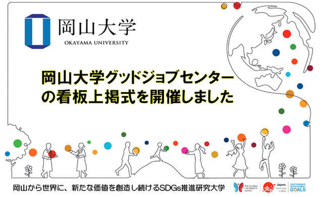 国立大学法人岡山大学(本部:岡山市北区、学長:槇野博史)は、2021年4月1日、障がい者の雇用を行う本学のグッドジョブセンターの看板上掲式を、学長、理事が参加し岡山大学津島キャンパス(岡山市北区)で開催しました。