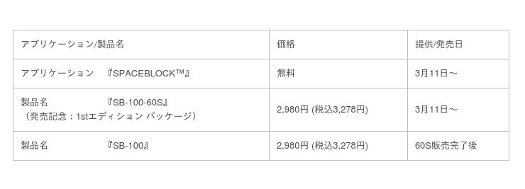 また、通常パッケージ「SB-100」に特典として1.RGB LEDマトリックスパネル2.60日間サービス利用無料クーポンを加えた1stエディション パッケージ「SB-100-60S」をローンチ記念キャンペーン限定品として発売いたします。