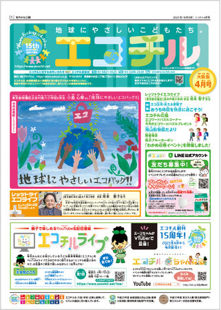 北海道・東京都・横浜市の公立小学校等を通じて、毎月各家庭に76万部無料配布されており、多くの親子に親しまれている 子ども環境教育情報紙「エコチル」が創刊15周年を記念し、2021年4月から全国を対象としたデジタル版の発行及び、YouTubeでの生配信番組をスタートし、オンラインで全国展開いたします。