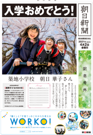 思い出の写真を中心に号外を作成する写真バージョンと、門出に際した言葉を贈るメッセージバージョンの二つのフォーマットを用意しました。新たなスタートを迎えた大切な人のための、まさに一生の記念となる特別号外になることでしょう。ウェブサイトから申し込み、全国のセブン-イレブンに設置されているマルチコピー機で出力するシステムで、多くの皆さまに簡単にご利用いただけます。朝日新聞社ではこうしたサービスを通し、今後も皆さまの幸せな記憶を「新聞」を通して広く伝えていく活動を進めてまいります。