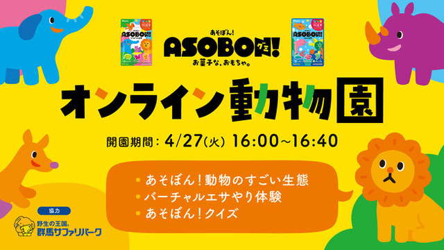 そこで、より「あそぼん!グミ」の仲間の動物たちの生態に興味を持っていただくため、「あそぼん!なりたいどうぶつ総選挙」の実施に合わせ、動物たちの『知られざる能力』や『ユニークな生態』をリアルな映像で伝える「あそぼん!オンライン動物園」を2021年4月27日(火)16時から開催します。