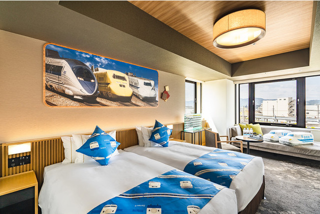 ホテルより徒歩約2分、同じ梅小路エリアでご家族に人気の「京都鉄道博物館」を満喫できるよう、ホテルスタッフが本プランを考案いたしました。部屋に入ると目に飛び込んでくるN700系、ドクターイエロー、500系と評判の車両が揃い踏みした大きなパネルやずらりと並ぶ鉄道模型、新幹線型の抱き枕など、鉄道好きのお子様が“熱く”なる装飾を施しました。さらに、大人も楽しめるゲーム機「電車でGO! PLUG & PLAY」をご用意したほか、お部屋に仕掛けられたクイズラリーの正解数に応じ、お子様に嬉しい鉄道グッズをフロントでお渡しいたします。もちろん「京都鉄道博物館」の入館券も含まれておりますので、より“鉄道の旅”を満喫いただけます。