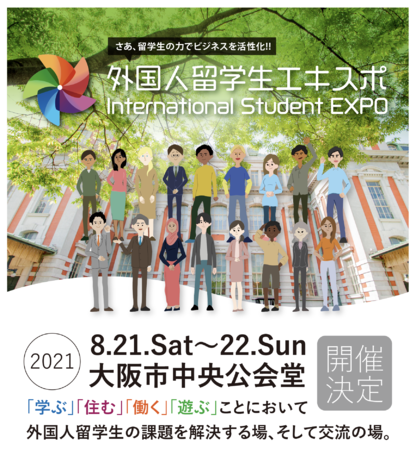 外国人留学生エキスポ実行委員会は2021年8月21日(土)~8月22日(日)に、外国人留学生のお悩み解決・国際交流をテーマとした、「外国人留学生エキスポ(International Student EXPO)」を大阪市中央公会堂にて開催します。