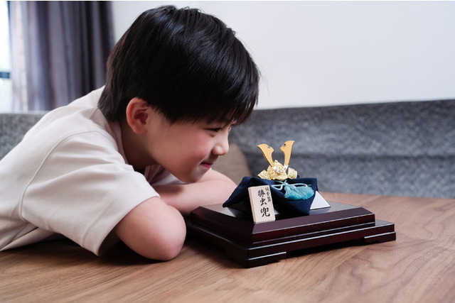 兜と一緒に飾ることのできる「純金置物 金太郎」(税込価格:332,000円)や「純金額 こいのぼり」(税込価格:250,000円)などの端午の節句関連の置物や額を展開しており、既に兜をお持ちのご家族が2人目以降のお子様用として購入するなど、人気の高いアイテムとなっています。