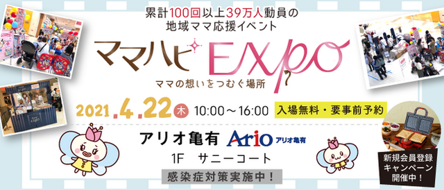 2021年4月22日(木) 10:00~16:00 「ママハピEXPO@アリオ亀有」