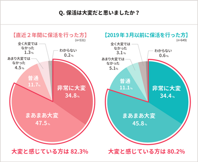 「保活は大変だ」と感じたママは、直近2年間で保活を行った方・それ以前に保活を行った方ともに約8割と大きな変化はなかった。
