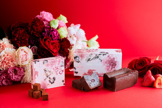 MAISON CACAO の看板品、小麦粉不使用の濃厚な「生ガトーショコラ」の母の日限定フレーバー。 国産の水耕栽培された希少なバラのジャムと、いちごの王様あまおうを贅沢に使用しました。 バラといちごの繊細な味わいを表現するため、一番にこだわったのはベースになるチョコレート。カ カオ感がありながらも優しい味わいのビターチョコレートをオリジナルで作りました。バラのチョコ レート生地の中にはとろりとしたあまおうとバラの花びらのソース。なめらかな口溶けと華やかに広 がる香りをお楽しみください。