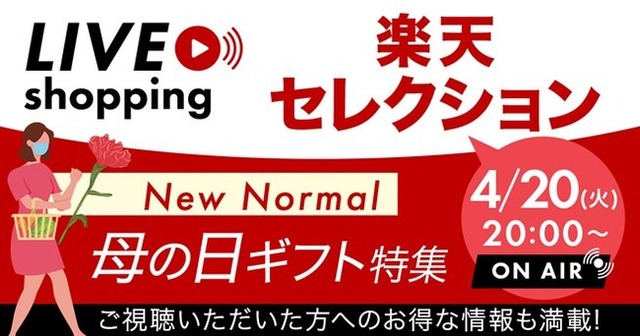 株式会社LivePark(東京都港区、代表取締役社長:安藤 聖泰)は、楽天グループ株式会社が運営するインターネット・ショッピングモール「楽天市場」で公開中の「楽天市場 母の日特集2021」にあわせて、ライブコマースイベント『楽天セレクション ~New Normal 母の日ギフト特集~』を4月20日(火)20時から配信します。
