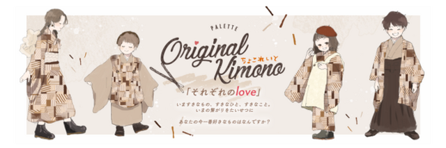 大好きなチョコレートを思う存分詰め込んだ『ちょこれいと』・小さいころから大好きなキラキラを散りばめた『とぅいんくる』の2種類。作成中の着物は6月に公開予定です。