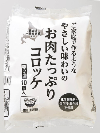 原料のじゃがいもは北海道十勝産の「男爵いも」を使用し、粗く潰したじゃがいもの食感とひき肉の旨みが味わえる、商品名の通り「ご家庭で作るようなやさしい味わい」を楽しめる素朴なコロッケに仕上げました。
