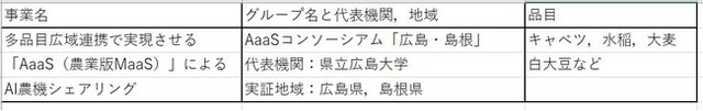 事業名は「多品目広域連携で実現させる『AaaS(農業版MaaS)』によるAI農機シェアリング」,県立広島大学の資源循環プロジェクト研究センター(センター長:三苫好治教授)が代表を務める「AaaSコンソーシアム『広島・島根』」によるもので,庄原商工会議所を調整役として,広島県と島根県の12事業者が参画。重原農園(庄原市西城町)を準備室とし,計477ヘクタールの農地で,スマート農業の仕組みを駆使した農機具のシェアリングを行います。