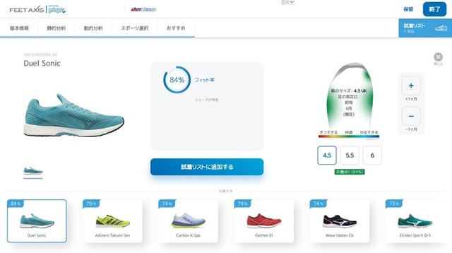 これまで、ランニング・ゴルフ・アウトドア・サッカーシューズに関して測定データに基づいたシューズを推奨してきましたが、5月中旬より、バスケット・テニスが追加されます。新規に競技を始める部活生や、買い替えを検討されているお客様のシューズ選びをサポートします。また、将来は、スポーツの競技分野にとらわれず、すべてのシューズを推奨対象にしていく計画です。