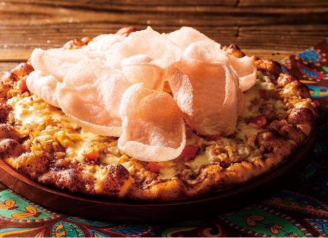 甘辛いナシゴレンソースに「炒めたご飯」という 意味の「ナシゴレン」をそのままトッピング。パリパリ食感のえびせん(クルプック)も添えて、インドネシアの屋台飯をピザで表現しました。