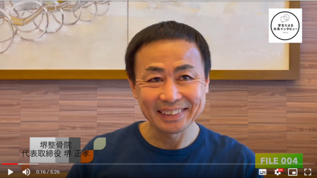 【堺整骨院グループ 代表取締役 堺正孝のインタビュー動画の静止画】