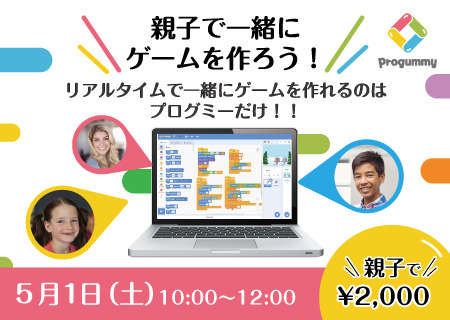 株式会社プログミー(本社:東京都文京区、代表取締役:石橋康大)は、共同編集できるビジュアルプログラミングサービス「プログミー」を使ったイベント講座を初開催します。このイベント講座では親子を対象とし、親子で力を合わせて共同プログラミングによるゲームづくりを実施します。