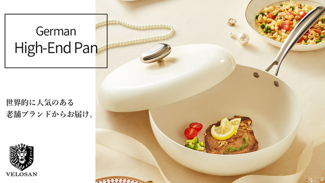 VELOSANフライパンは、くっつきや焦げつきを防ぐ浮遊粒子技術や蓄熱性に優れた高機能設計と、美しいデザイン・質感とを組み合わせたハイエンドフライパン。伝統的な職人精神に革新的な技術とをあわせもち、世界的に人気のあるドイツの老舗ブランドからお届けする製品です。