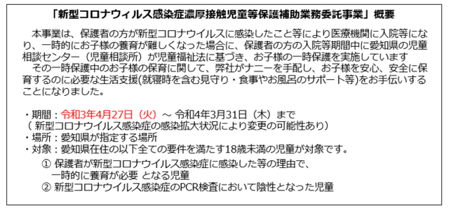 変異株の出現やリバウンドによる感染者数の再増加とまだ収束の兆しが見えない中、県民の安全や育児支援への取り組みを拡充する愛知県とともに、本事業を推進してまいります。ポピンズは引き続き、様々な自治体にもこうした取り組みが広がるよう、尽力して参ります。