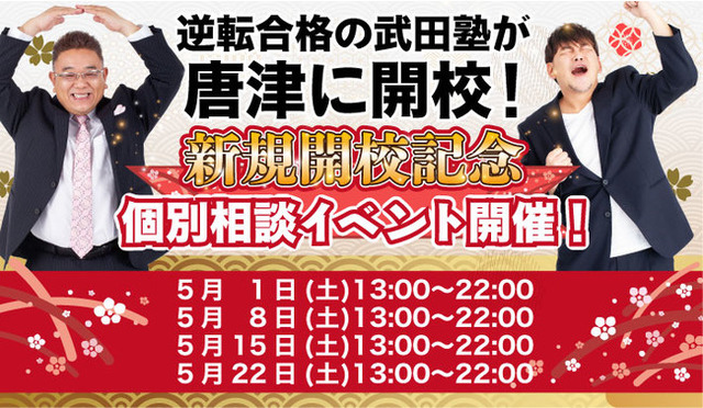 武田塾唐津校の開校を記念して、唐津校では個別相談イベントを実施いたします。