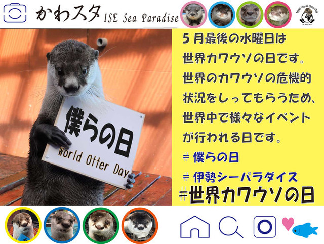 三重県伊勢市の「伊勢夫婦岩ふれあい水族館」通称、伊勢シーパラダイスでは、令和3年5月26日(水)の記念日「World Otter Day(世界カワウソの日)」のPR活動として、自宅で楽しむWorld Otter Day特別サイトを公式サイトに開設致します。