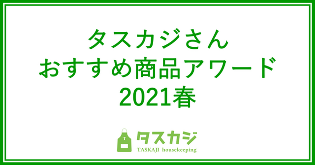 シェアリングエコノミーの家事代行マッチングサービス「タスカジ」を運営する、株式会社タスカジ(本社:東京都港区、代表取締役:和田幸子、以下タスカジ)は、タスカジさん(=タスカジに登録するハウスキーパー)が、「家事のプロ」としてのおすすめ商品に関するアンケート調査を実施、「タスカジさんおすすめ商品アワード2021春」(タスカジ研究所調べ)としてタスカジさんのおすすめアイテムを発表します。コロナの影響が長引く中で迎えた新年度、まだまだ続くイエナカ時間で家事の負担を軽くしてくれる商品があがりました。