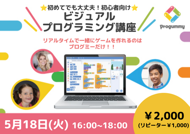 株式会社プログミー(本社:東京都文京区、代表取締役:石橋康大)は、共同プログラミングできるビジュアルプログラミングサービス「プログミー」を使用する子ども向けイベント講座を5月18日(火)にオンラインにて開催します。
