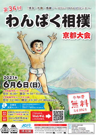 公益社団法人京都青年会議所(京都府京都市)(以下、JCI京都)は、「第34回わんぱく相撲京都大会」を2021年6月6日(日)に京都市武道センターにて開催いたします。開催に先立ちまして、参加申し込みを5月14日(金)まで募集しております。JCI京都では、子どもたちが日本を代表する競技である相撲という真剣勝負の中で、自己を律する心、お互いを敬う心を育む機会にすると共に、相撲道を通して、さらに高い志と夢を与えられる機会とするべく毎年「わんぱく相撲京都大会」を開催しております。保護者や応援者・コーチなどの入場を制限するなど、新型コロナウイルスガイドラインを作成し、選手および応援者に2週間前からの検温などを行い、コロナ感染対策はしっかり準備しておりますのでお申込みお待ちしております。