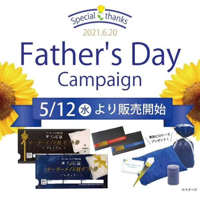 オーダーメイド枕の店まくらぼは、2021年父の日キャンペーン「オーダーメイド枕ギフト券」セットを、5月12日(水)よりオンラインショップにて期間限定販売しております。