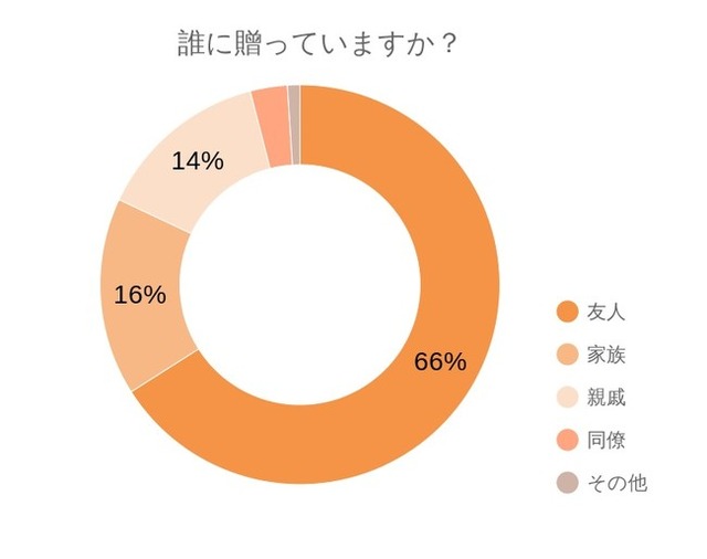 友人へ送るという人が66%と圧倒的な結果になりました。以下、家族・親戚となっています。
