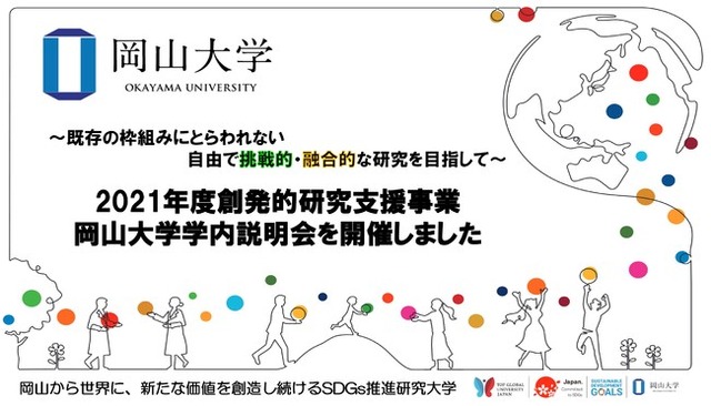 国立大学法人岡山大学(本部:岡山市北区、学長:槇野博史)は、国立研究開発法人科学技術振興機構(JST)が昨年度から実施している「創発的研究支援事業」について、次世代研究拠点形成などを担う優秀な若手研究者の育成や人材確保、研究マネジメント機能の強化などの観点から、学内に那須保友研究担当理事・副学長を長とする専門のタスクフォースを設置し、積極的かつ全学を挙げて同事業への対応を進めています。