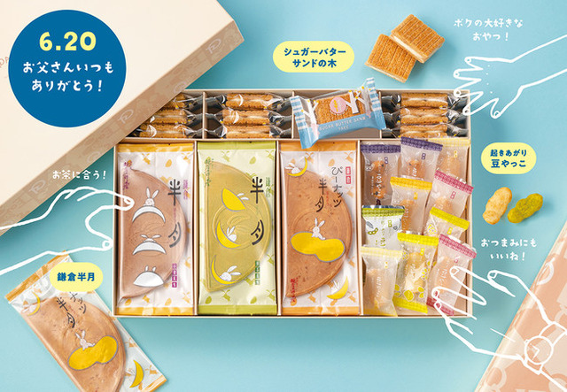 “ギフトにぴったりな菓子通販No.1”「パクとモグ」のセレクトで、“好きなバタースイーツNo.1”の称号を持つ「シュガーバターの木」のやみつきサンドと、“もらって嬉しい鎌倉スイーツNo.1”に選ばれた「鎌倉五郎本店」の代表作を一緒にお届け。お父さんはもちろんファミリーみんなを虜にしてしまうよくばりなギフトです。