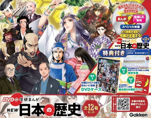 株式会社 学研ホールディングス(東京・品川/代表取締役社長:宮原博昭)のグループ会社、株式会社 学研プラス(東京・品川/代表取締役社長:南條達也)は、発売2カ月で30万部を突破した『DVD付 学研まんが NEW日本の歴史』(全12巻)の、特典付きの2つの新セットを発売いたします。