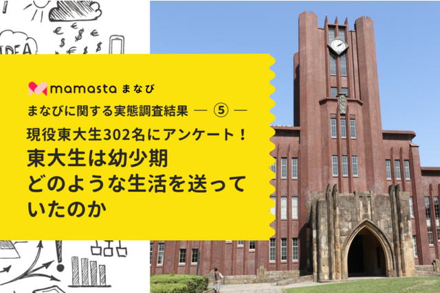 今回の調査は「東大に合格するお子さんは幼少期どのような生活を送っていたのか」にフォーカスし、育児中のママたちが特に気になる<東大生の幼少期のあそび・習い事・勉強・親子関係>の4つの項目に注目して調査を実施いたしました。これから子育てを行う保護者の方、現在子育てを行なっている保護者の方にとって大変興味深い回答が多く寄せられたことをご報告いたします。