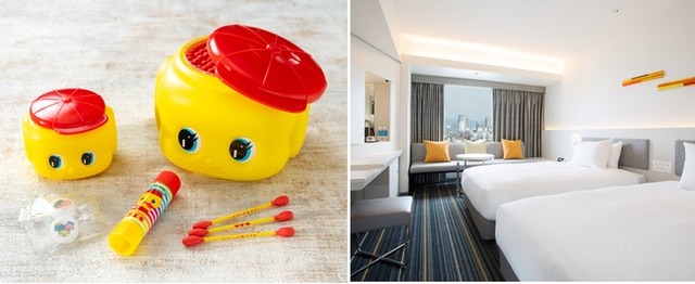 本プランでは、フエキくんグッズセット(スティックのり、ラムネ、綿棒)に加え、ホテル周辺店舗にて冷たいスイーツかあつあつたこ焼きをお召し上がりいただける「ひやあつ券」をご用意するほか、フエキくんがお子様から愛されるキャラクターであることから小学生以下の添い寝のお子様を宿泊無料としております(通常は小学生から添い寝不可)。詳細は以下をご高覧ください。