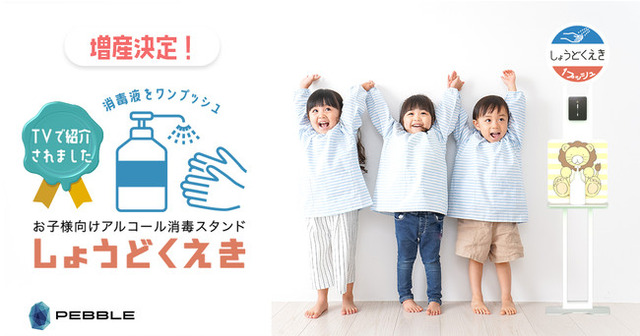ウイルス感染症対策推進企業のペブルコーポレーション株式会社(本社:東京都江東区、代表取締役:藤方 裕伸、以下ペブルコーポレーション)は公式ページで3月19日からデリバリーを開始した子供向けアルコール消毒スタンド『しょうどくえき』の追加生産を決定したことをお知らせいたします。