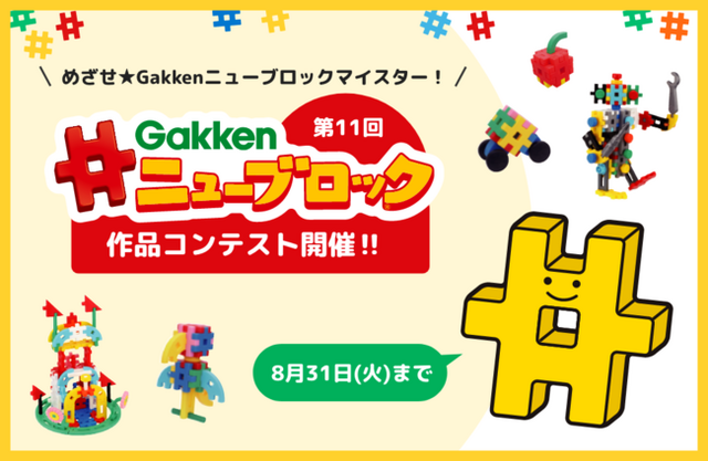 当コンテストは8月31日まで開催します。ニューブロックファンの方々と共に、自由な発想をカタチにした様々な作品を通して、無限に広がるGakkenニューブロックの可能性を追い求め、多くの方と共有し、ニューブロックの魅力を更に広めていくことを目指しています。コンテストの詳細はホームページ(https://newblock.jp/campaign/newblock2021/)にてご覧いただけます。