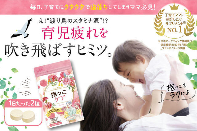 子育てを頑張る全ての方を応援し、活力と笑顔を届けるため、子育て世代を対象とした商品の開発と販売を行う日本フィリーノ株式会社(本社:千葉県市川市,代表取締役:有賀幸)は,子育てママに紹介したいサプリメントNo.1※を獲得した自社開発の子育て応援サプリメント「抱っこケア」を50%OFFでさらにオリジナルエコバックがついてくるキャンペーンを開始したことをお知らせいたします。