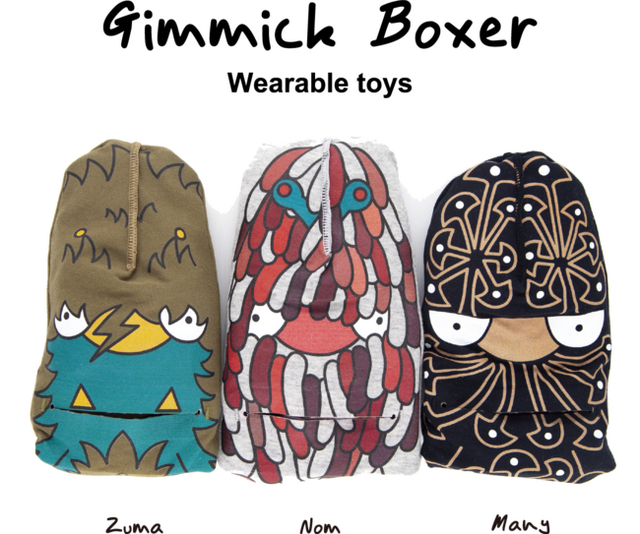 ギミックボクサーのデザインは、パンツをモンスターキャラクターに擬獣化させ、大人から子供まで親しみを感じて頂きやすいデザインです。