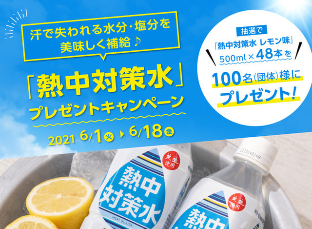 「熱中対策水 レモン味」500ml×48本(2ケース)を抽選で100名(団体)様