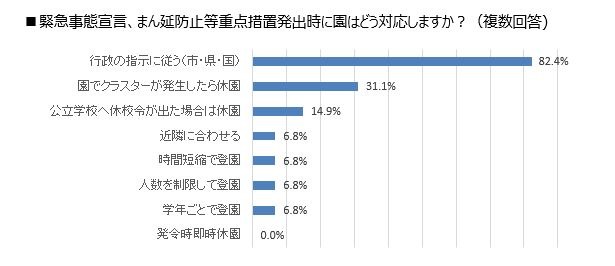 ◆コロナ禍から1年がたち、緊急事態宣言での対応を決めている園は約9割