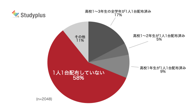 学習記録SNS「Studyplus」を運営するスタディプラス株式会社(所在地:東京都千代田区、代表取締役:廣瀬高志)は、2021年4月23日~5月7日の間に全国の高等学校の教科主任を対象として「1人1台端末」整備状況やデジタル教材の導入状況に関するアンケート調査を行い、2,048件の有効回答を得ました。