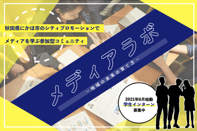 秋田県にかほ市(市長・市川 雄次)は、同市のシティプロモーション活動を通じてメディア・パブリックリレーションについて実践的に学ぶコミュニティ「メディアラボ ~地域の未来の育て方~」を2021年6月よりスタートします。同時に、地方創生や地域の情報発信に興味を持つ学生参加メンバー(インターンシップ生)を募集します。