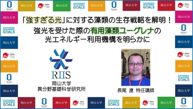 国立大学法人岡山大学(本部:岡山市北区、学長:槇野博史)異分野基礎科学研究所の長尾遼特任講師の共同研究グループは、ミドリムシと呼ばれる二次共生緑藻Euglena gracilis(ユーグレナ)に強光照射し、光合成機能・色素発現および励起エネルギー伝達機構の変化を分析しました。この結果から、ユーグレナは強光により集光性色素タンパク質から光化学系タンパク質への励起エネルギー供給を抑制する一方で、エネルギー消光を誘導することが明らかになりました。本研究成果は2021年5月26日、科学雑誌「Photosynthesis Research」にオンラインで掲載されました。