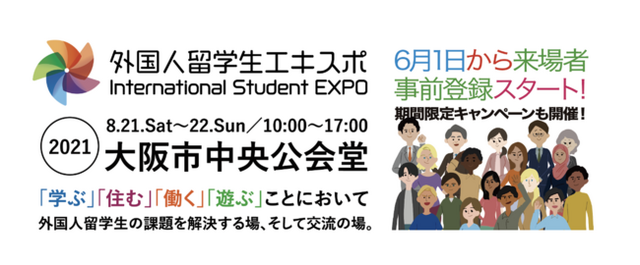 2021年8月21~22日に大阪市中央公会堂で開催する、「外国人留学生エキスポ」の来場事前登録を開始しました