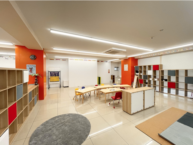 Global Tree International School仙台校は、「子供たちの成長に適応できるデザイン」をコンセプトに内装を設計。学習だけではなく、環境からも影響を受けて成長する子どもたちに寄り添った温かみのある雰囲気としました。低い棚で空間を区切ることで、スクール全体をロビーから見渡すことが可能になっており、どのような活動が教室内で行われており、子供たち自身が今何をすべきなのかを常に考えることのできる環境を実現しています。さらに、事務室を扉や壁で区切るのではなく、教室と連続性を持たせたオープンなデザインで設置。スタッフ全員が全ての子供たちと関わることができようになっています。