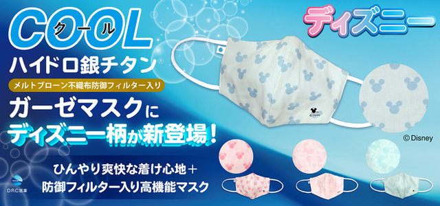 感染症・アレルギー疾患治療薬開発を専門とする創薬会社、DR.C医薬株式会社(本社:東京都新宿区/代表取締役:岡崎成実/以下DR.C医薬)は、不衛生タンパク質や花粉等のタンパク質を分解する独自のクリーン技術「ハイドロ銀チタン(R)テクノロジー」を用いたメルトブローン不織布防御フィルター入りのハイドロ銀チタン(R)クールガーゼマスクから、ディズニー柄を2021年5月28日(金)よりDR.C医薬公式オンラインショップにて販売開始致しました。