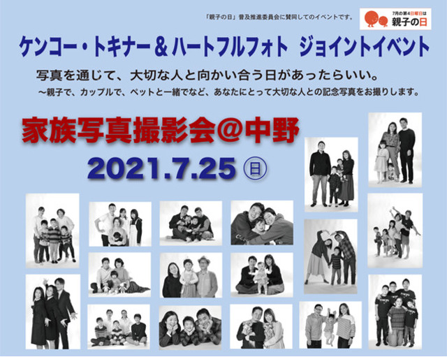 株式会社ケンコー・トキナー(本社:東京都中野区、代表取締役社長:山中 徹)は、家族の絆をテーマに結婚、子ども誕生、親子の写真の撮影を行っている「Heartful Photo」による「家族写真撮影会」を開催。開催日時は2021年7月25日(日)。ケンコー・トキナーサービスショップ内撮影スタジオ(東京都中野区中野5-68-10)にて実施いたします。